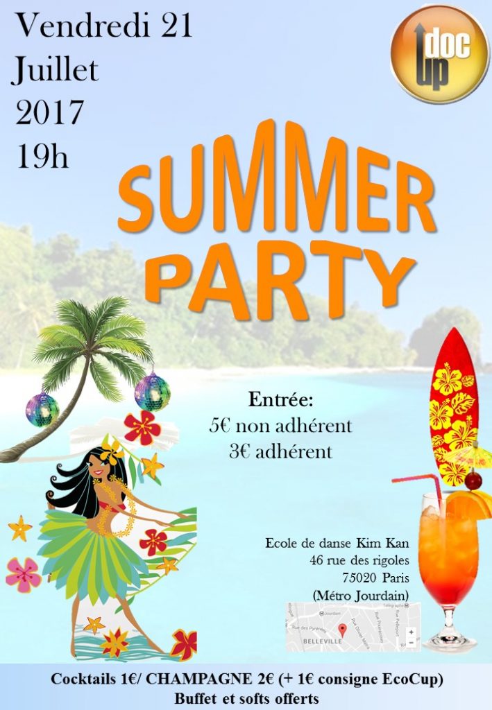 Cest la fête de fin dannée de Docup, loccasion de se retrouver entre adhérents pour se remémorer les temps forts de lannée passée tout en profitant des petits fours, du champagne sans oublier les dégustations de vin et les groupes de musique qui animent la soirée : les summer parties ! Elle a eu lieu lannée dernière dans limposante salle Marie Curie sur le campus des cordeliers.